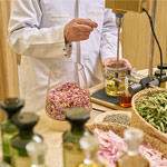 Ambas firmas defienden la utilización de los ingredientes naturales y apuestan por la creatividad. Hace dos años la empresa de cosmética, tratamiento facial y perfumes lanzó una colección de fragancias imaginadas por el chef pastelero y ahora han querido ir más allá creando conjuntamente un espacio acogedor y refinado, con el objetivo de que los visitantes vivan una experiencia sin precedentes. Desde primera hora de la mañana hasta bien entrada la noche, quien se acerque puede tomar un desayuno detox, comer, pedir un té o acabar el día con un cóctel, además de disfrutar de sus innumerables servicios: bar de postres, restaurante, degustación de cafés, rituales de belleza y productos de bienestar, y una tienda donde comprar pasteles, macarons, chocolates, perfumes, cremas y cosméticos.