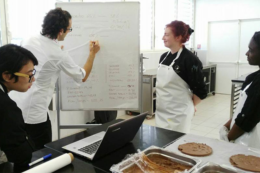 El maestro pastelero ejecutó una colección de productos clásicos de la casa, como el cheesecake, tomando como punto de partida los inputs principales del método: intensidad del sabor, percepción del dulzor, sólidos totales, grasas, aporte calórico y textura. A partir de aquí, los 11 alumnos tuvieron la oportunidad de elaborar seis merengues con diferentes edulcorantes, además de cremosos y compotas probando distintas formas de trabajar y diferentes ingredientes, ya que "sólo se aprende a partir de pequeñas experiencias".